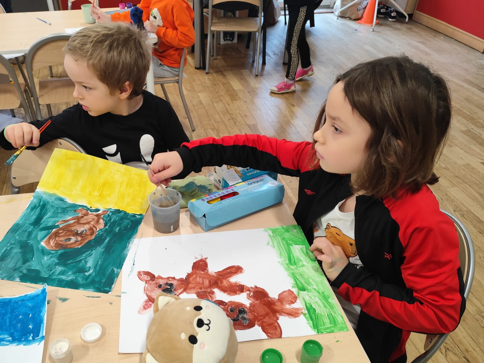 Na zajęciach plastycznych dzieci zamieniały zwykłą kropkę w różne pomysłowe dzieła – balon, kwiatek, misia, biedronkę, planetę Ziemię czy lalkę.