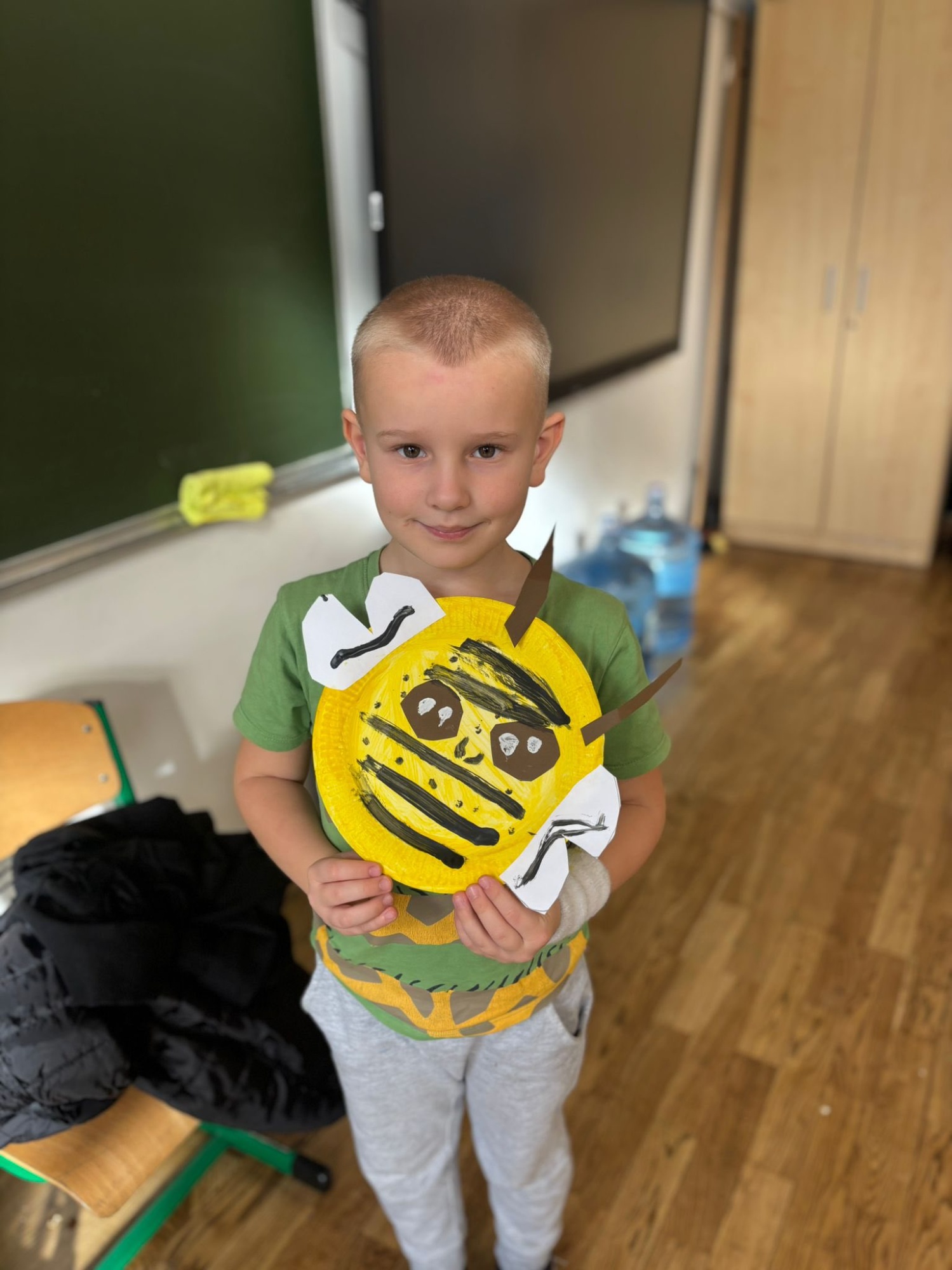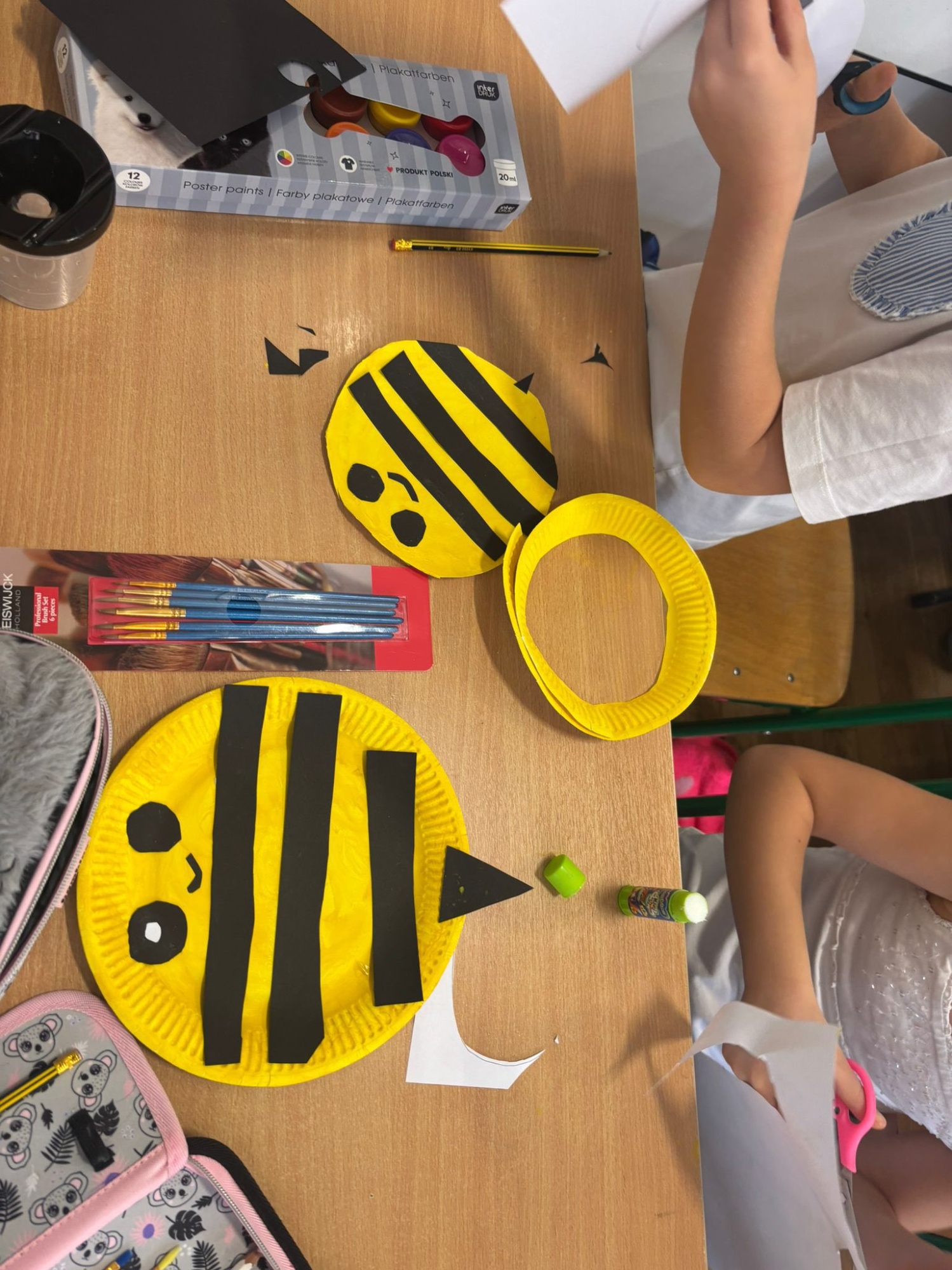 Uczniowie obejrzeli film edukacyjny o pszczołach, aby dowiedzieć się, jak ważne są dla przyrody, a następnie wykonali swoje własne, kolorowe pszczółki z papierowych talerzyków 🎨🍯