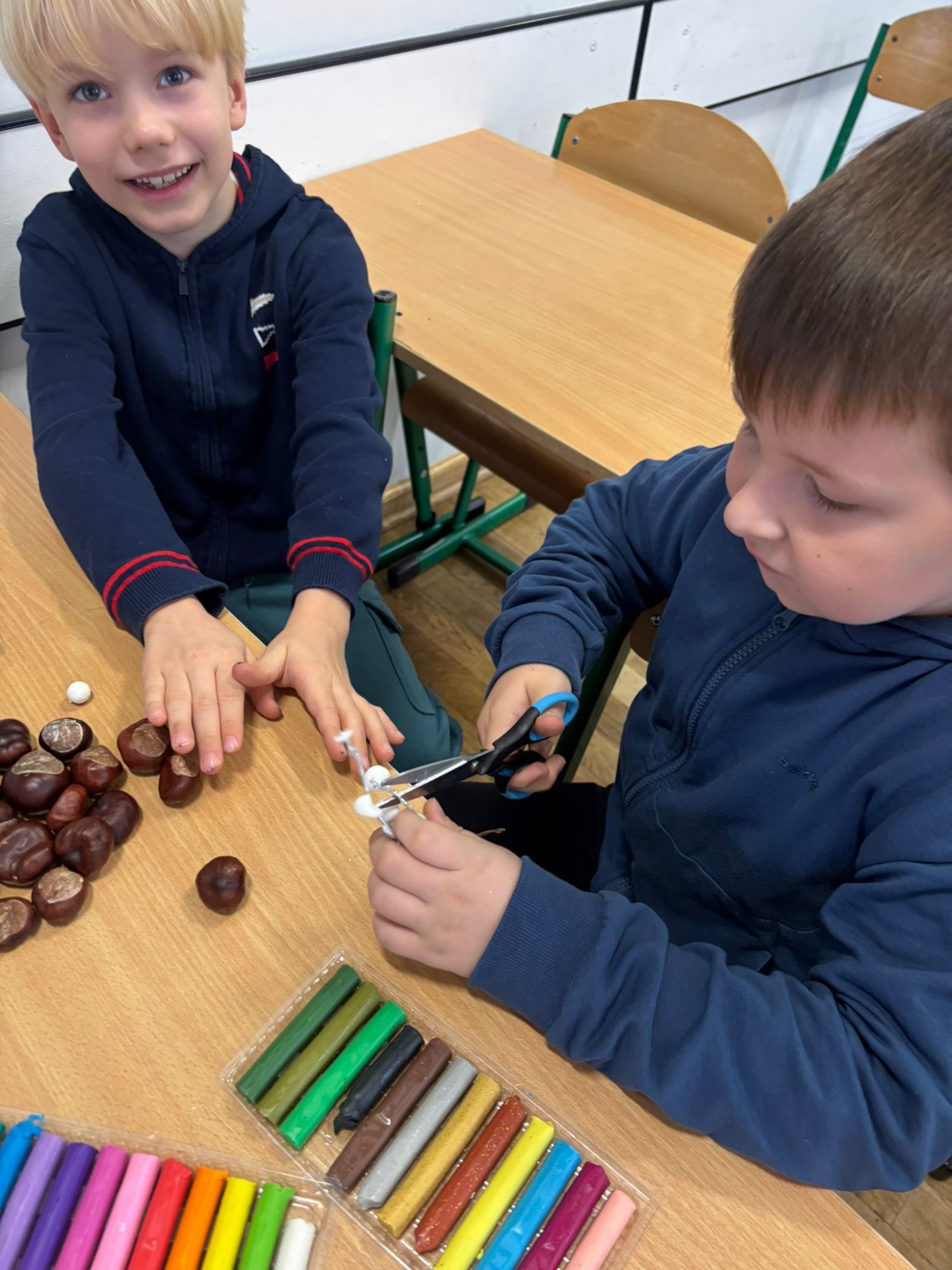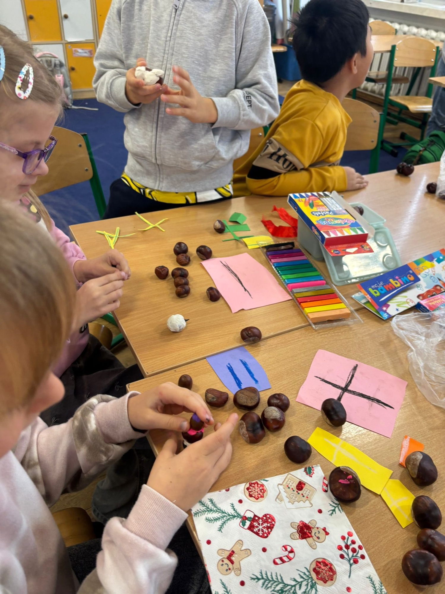 17 października 2025 r. uczniowie przynieśli do szkoły kasztany i żołędzie, które najpierw posłużyły im do matematycznych obliczeń