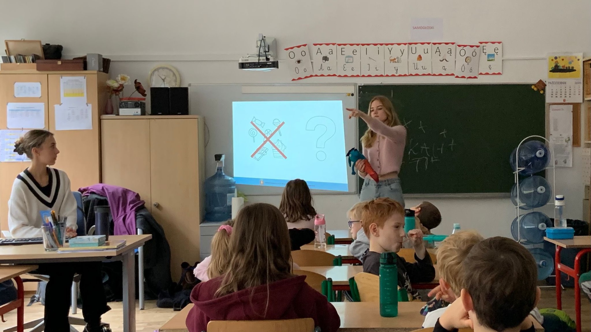 17 października 2025 r., klasa 2b miała przyjemność brać udział w warsztatach „wiem, że dobrze jem”.To było pierwsze z trzech spotkań, podczas którego uczniowie dowiedzieli się co to znaczy zdrowe i różnorodne jedzenie oraz jak powinna wyglądać nasz dieta.