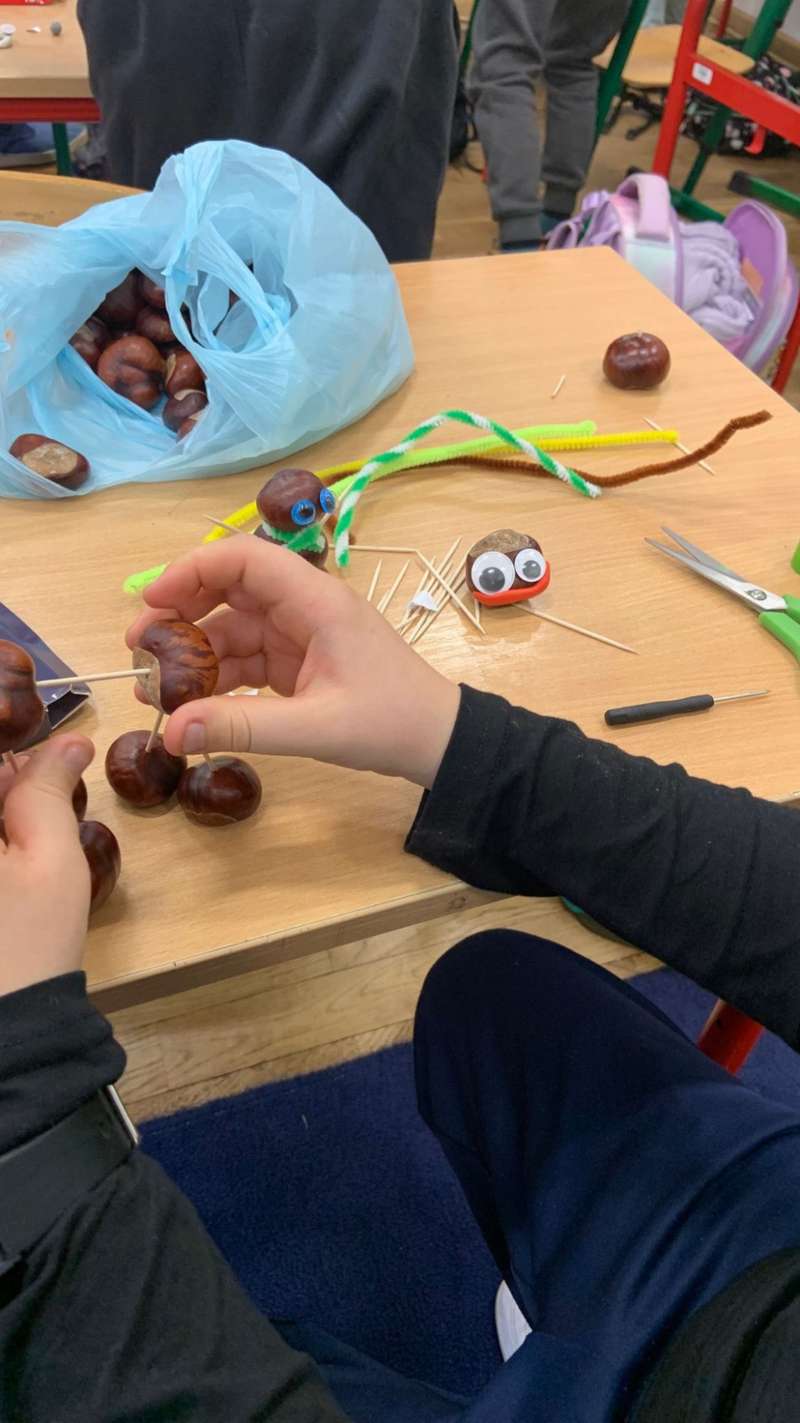 6 października 2025 r. uczniowie klasy 2b podczas zajęć rozwijali swoją kreatywność i zdolności manualne, tworząc przeróżne postacie i zwierzątka z kasztanów i plasteliny.Zajęcia sprzyjały współpracy, ćwiczyły cierpliwość oraz wyobraźnię, a efekt końcowy – kolorowe figurki – dał nam wiele radości i satysfakcji.