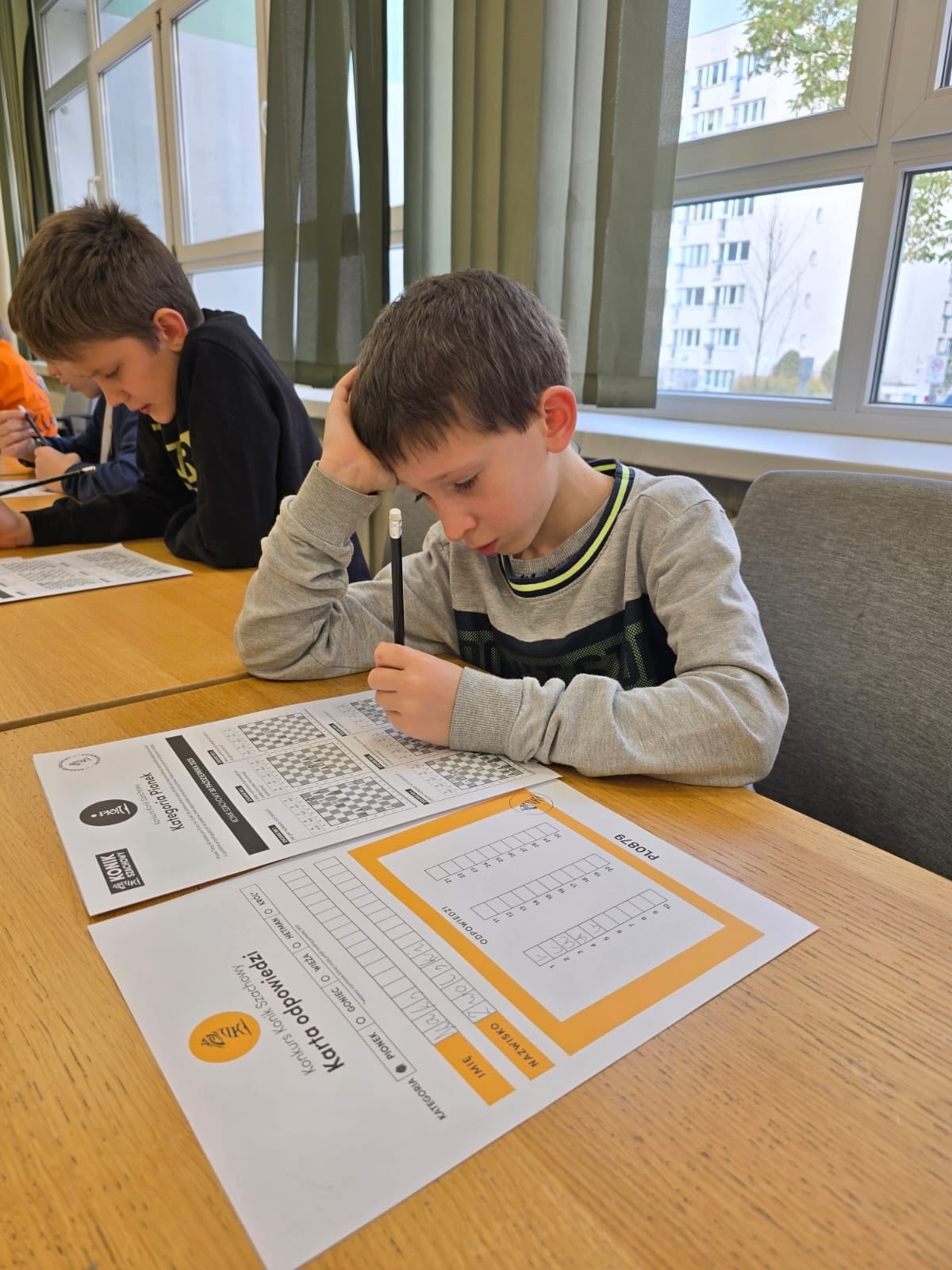 30.10.2025 r. nasza szkoła wzięła udział w ogólnopolskim konkursie „Konik Szachowy”!Uczniowie z klas 1–8, w różnych kategoriach wiekowych, z zaangażowaniem rozwiązywali ciekawe zadania szachowe.