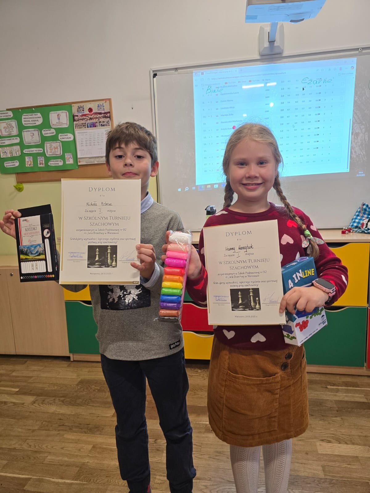 5 grudnia 2024 r. odbył się Międzyszkolny Turniej Szachowy.Marcelina Kruk z kl. 3a i Eryk Szczygieł z kl. 3b otrzymali wyróżnienia za najlepsze wyniki uczniów z klas I-III, a Sofia Bahdanovich z kl. 5a i Bartłomiej Puszkarski z kl. 4b zajęli bardzo wysokie miejsca w rywalizacji.
