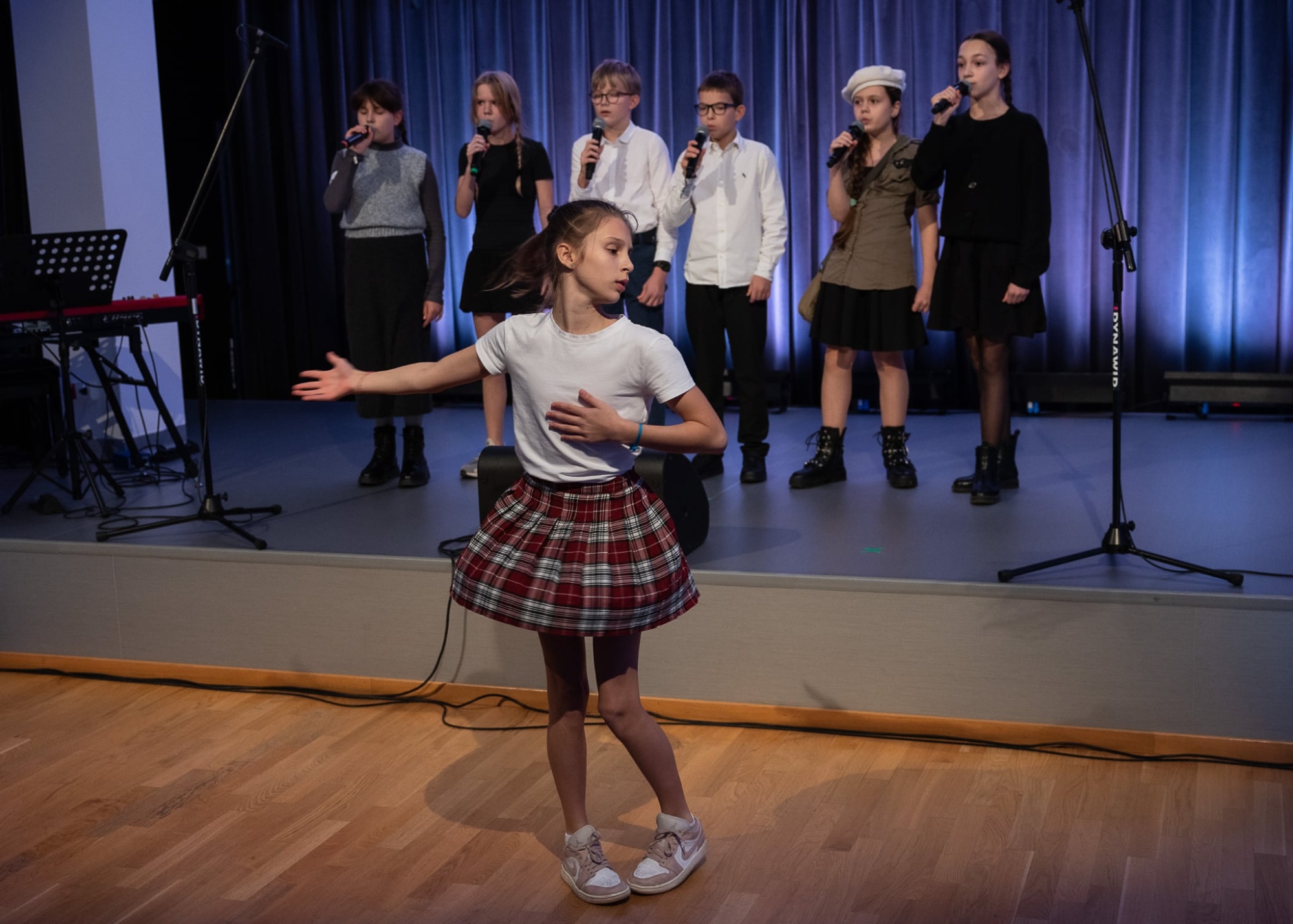 25 listopada 2024 r. reprezentacja szkolnego chóru „Mały Wiwat” oraz uczeń kl. 5c Antoni Krężołek uczestniczyli w I Przeglądzie Artystycznym „Z miłości do Ojczyzny” organizowanym przez Klub Dowództwa Garnizonu Warszawa.Ten patriotyczny konkurs wokalno – recytatorski skierowany był do uczniów szkół podstawowych na terenie Miasta Stołecznego Warszawy. Nasi uczniowie występowali w dwóch kategoriach: chóralnej (kl. 4-6) i recytatorskiej (kl. 4-6). Chórzyści zaprezentowali piosenkę zespołu Chłopcy z Placu Broni „Kocham wolność”, a Antek zadeklamował wiersz Aleksandra Fredry „Moja Ojczyzna”. Podczas śpiewu miał również miejsce występ gimnastyczny uczennicy kl. 5a Poli Stolarczyk.
